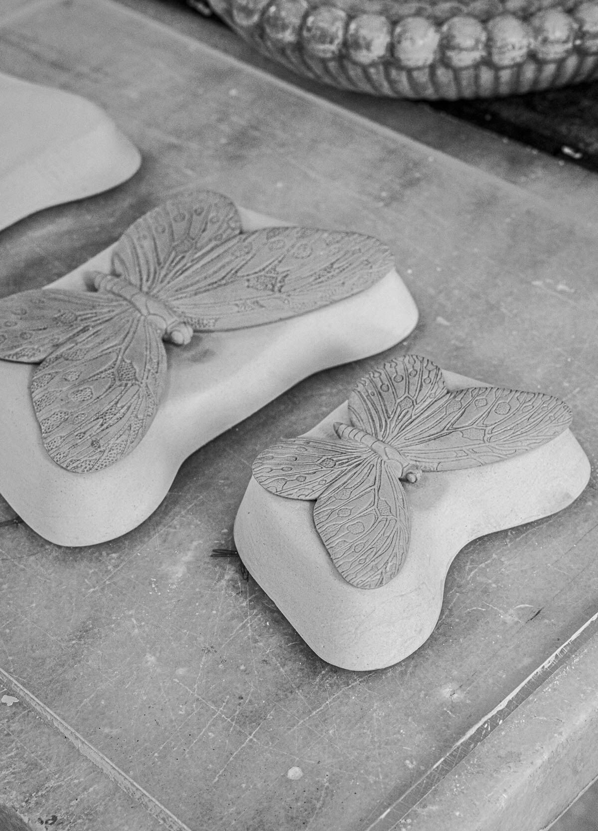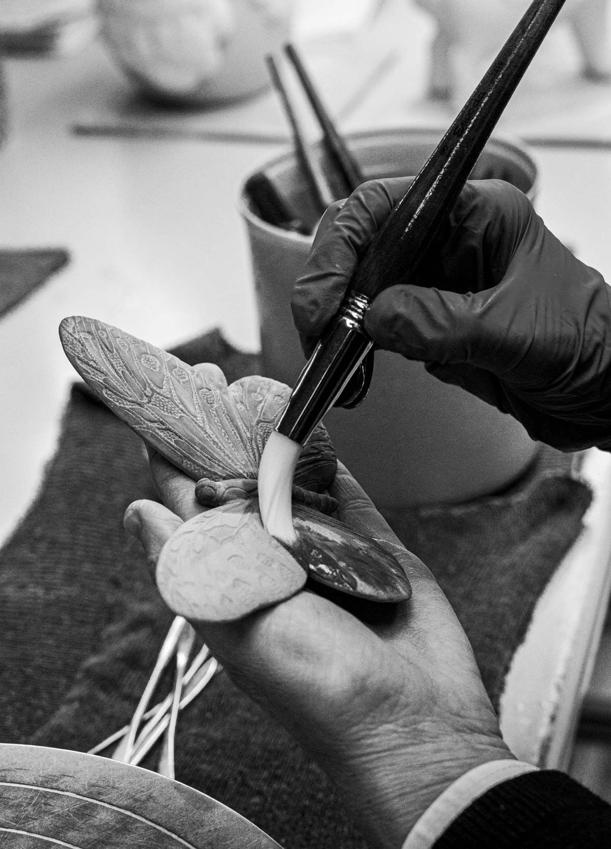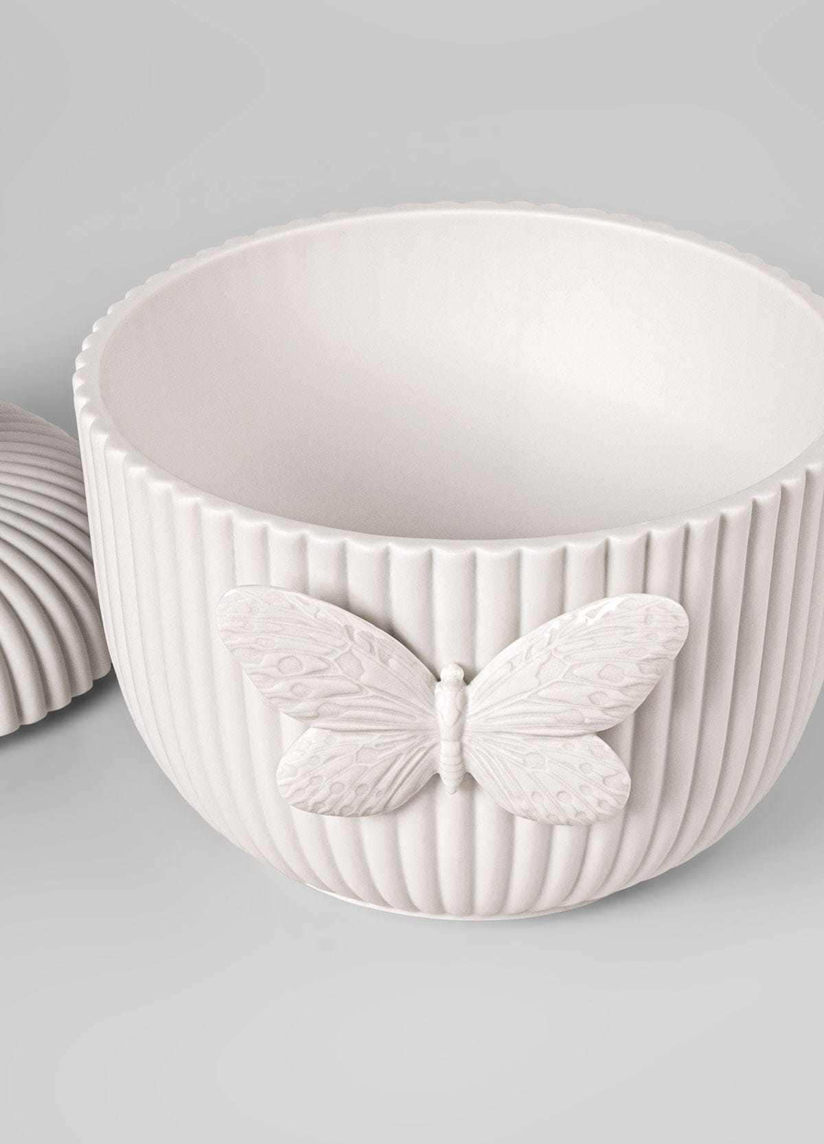 Designed by Olga Hanono, the Lady Luck jewelry box is a unique piece that combines matte white porcelain, wavy forms and a delicate hand-painted butterfly as its core element.This symbol of good luck and transformation adds a special meaning to a creation that balances tradition and contemporary design.