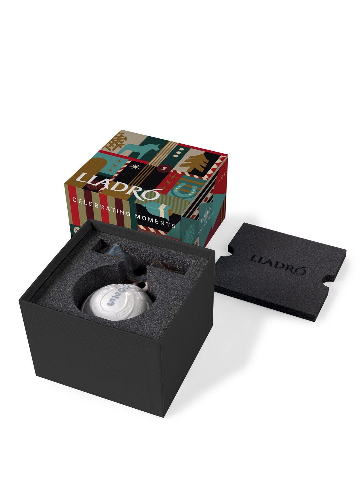 Porcelain ball with Scandinavian engravings, a unique Christmas ornament to celebrate and collect memories.