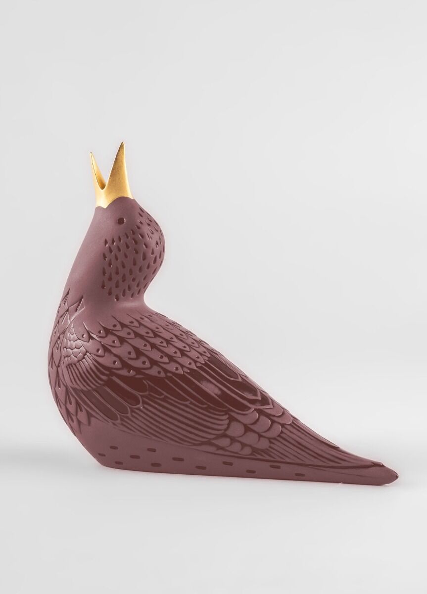 The starling is a small bird that nevertheless offers one of nature’s most beautiful sights when they flock together and fly as one in what is known as a murmuration. When flying in flocks these little birds synchronize their movements to form amazing patterns that cover the sky like dancing clouds. Lladró artists have focused on the bird’s unique iridescent black feathers, with green and purple sheens, captured in these starlings in the minute ornamentation. In the black and the purple versions, the single-color tone enhances each one of the feathers covering the little birds.