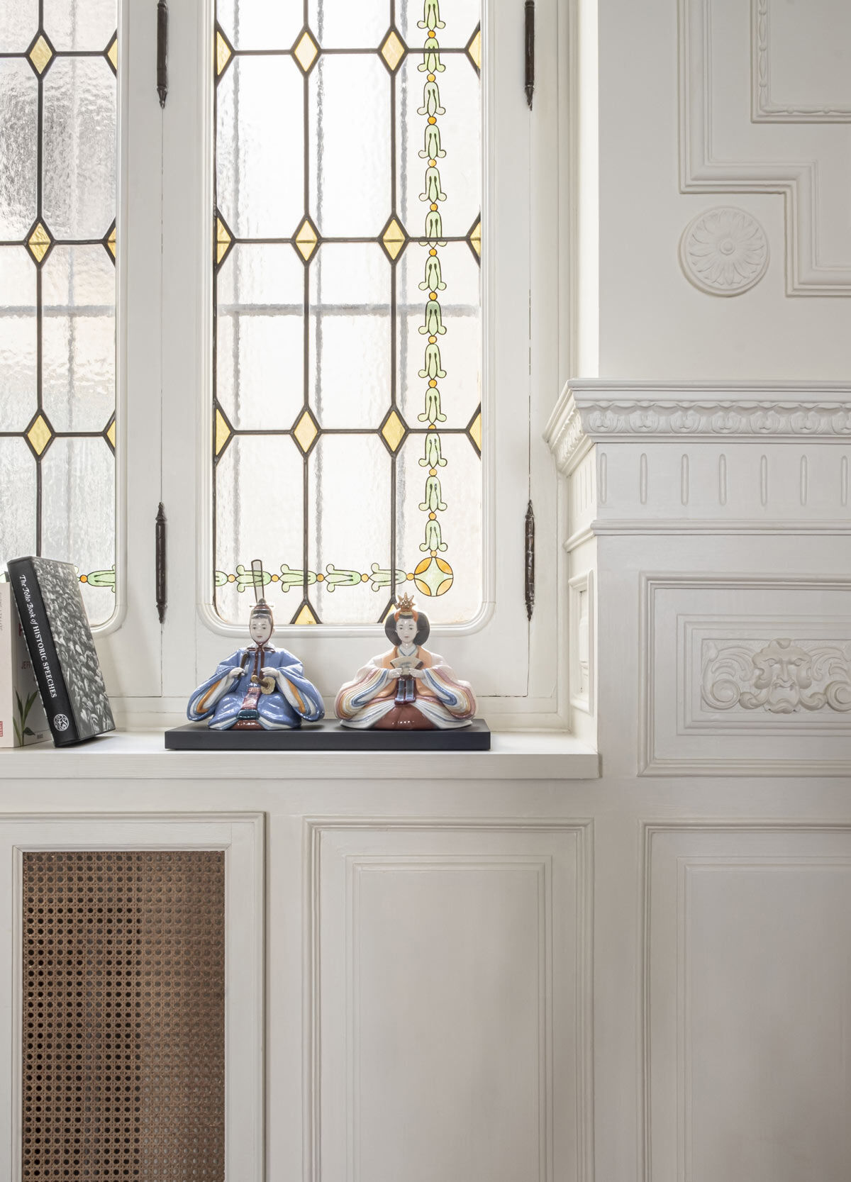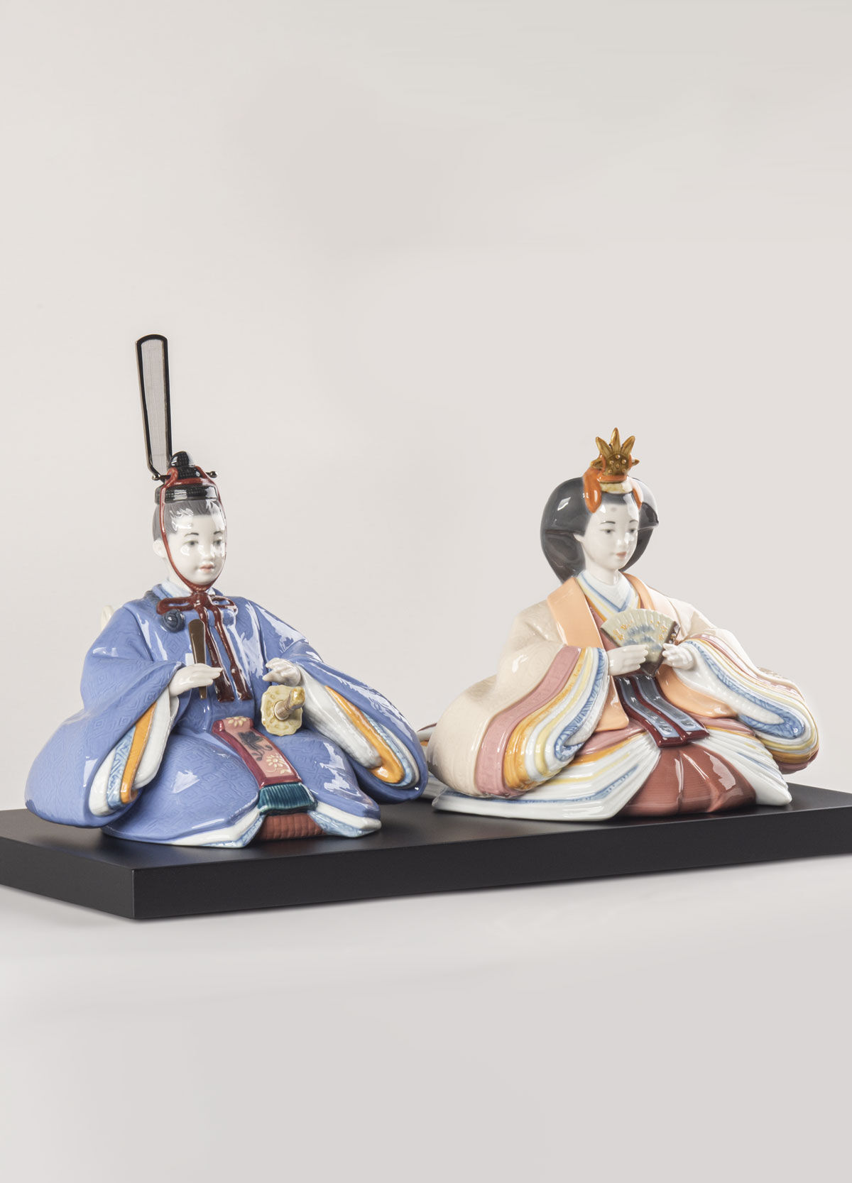 Composición de piezas de porcelana que representa a los Hina Dolls, la pareja de emperadores que constituye una de las tradiciones más populares de Japón.