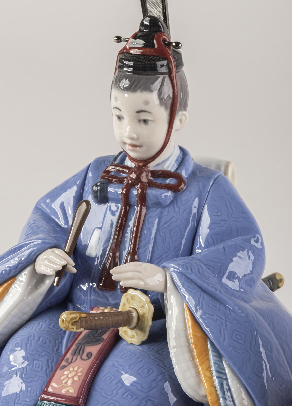 Esta edición limitada a 500 unidades, realizada en porcelana brillante, destaca por la sutileza de su decoración, que transmite equilibrio y serenidad. El elegante contraste entre el azul profundo del kimono del emperador y los tonos salmón, crema y coral del vestido de la emperatriz evocan la delicadeza estética de la corte imperial. Los detalles minuciosos, como los pliegues perfectamente definidos de los trajes, los ornamentos del cabello y los rasgos faciales cuidadosamente pintados a mano, reflejan la fidelidad con la que se ha recreado el ceremonial y la indumentaria de aquella época.