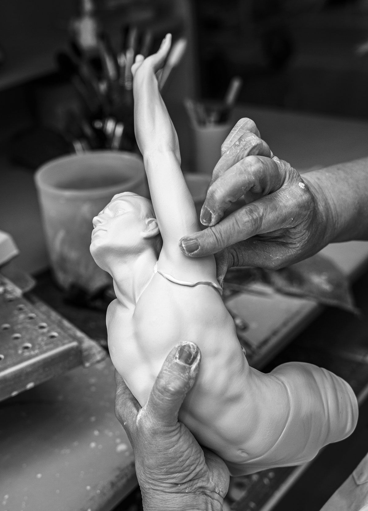 La finitura bianca opaca della porcellana contribuisce a definire con tutta la sua perfezione ogni dettaglio della modellazione dei corpi, mentre le parti con finitura lucida regalano un piacevole contrasto e apportano varietà al risultato finale. Un'opera contemporanea e fresca, dal grande potenziale decorativo, perfetta da regalare a un amante della danza. Realizzata a mano nei laboratori Lladró in Spagna.