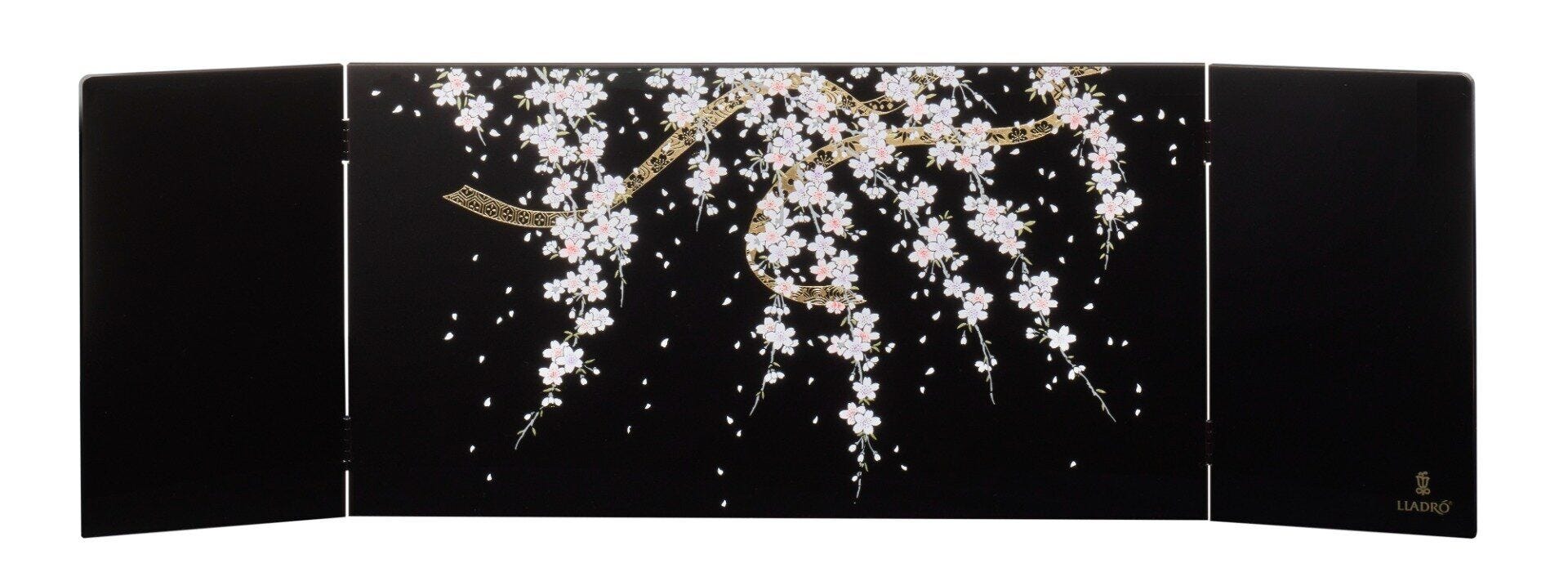 艶やかな漆に春を感じさせる花が美しく、リヤドロの雛人形をより格調高く飾って頂けます。 正面の右下にはリヤドロのロゴも入っています。