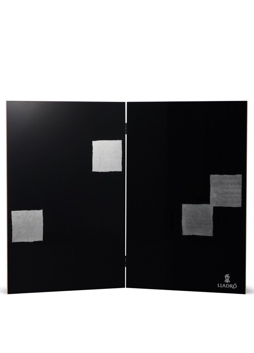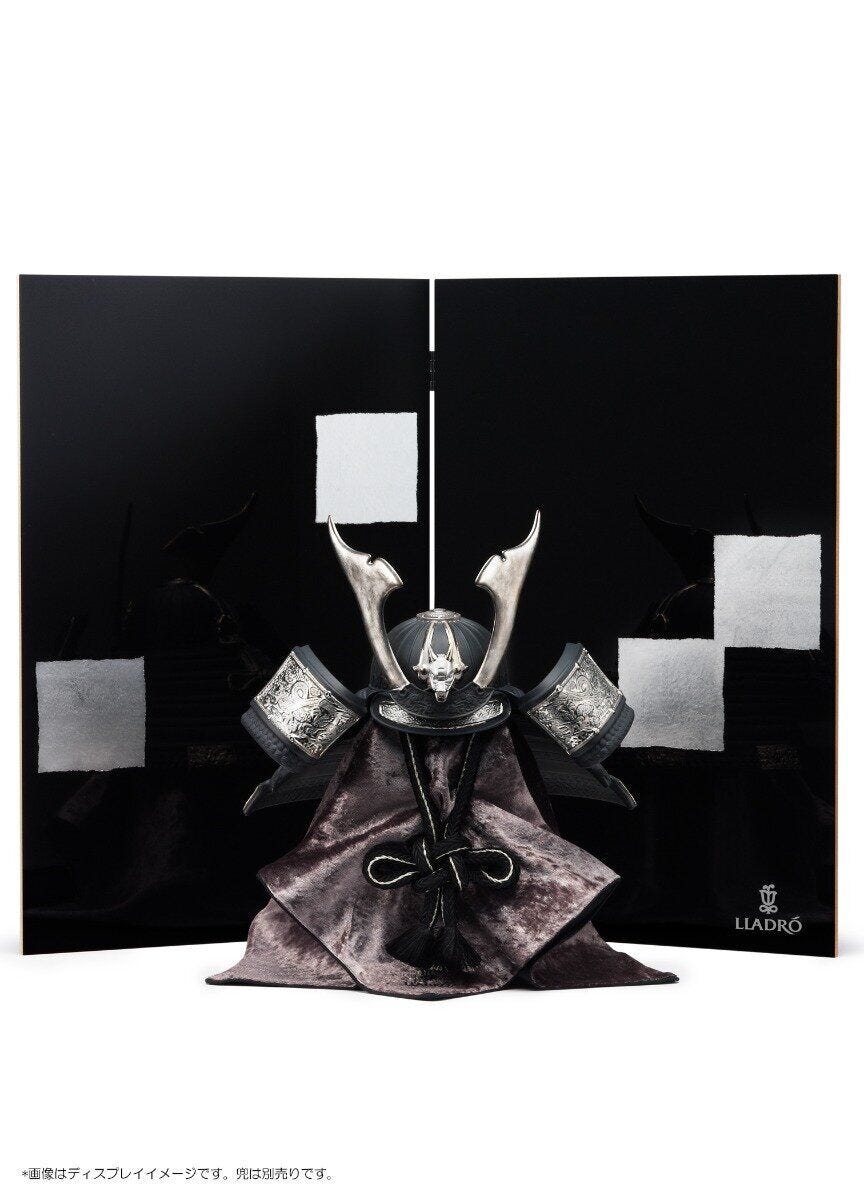 艶やかな黒の漆塗りに銀箔が華やかでリヤドロの若武者や兜などの五月人形をより格調高く、モダンな雰囲気で飾ってただけます。 正面の右下にはリヤドロのロゴも入っています。